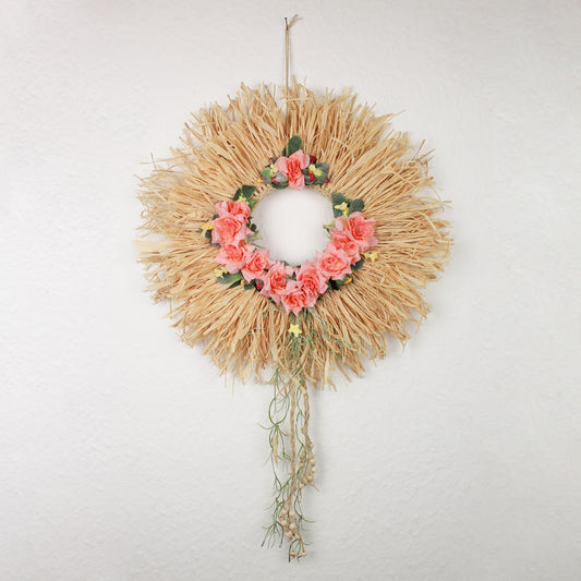 Boho Summer Vibes Wall Decor – Handmade with Raffia, Wool, and Wooden Beads