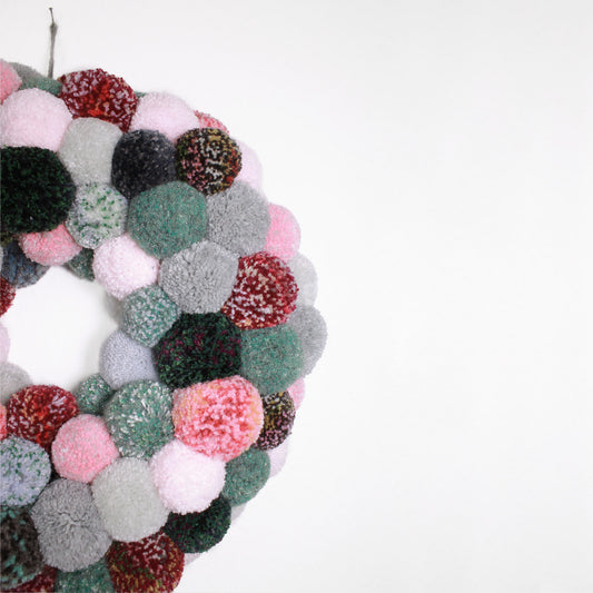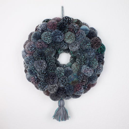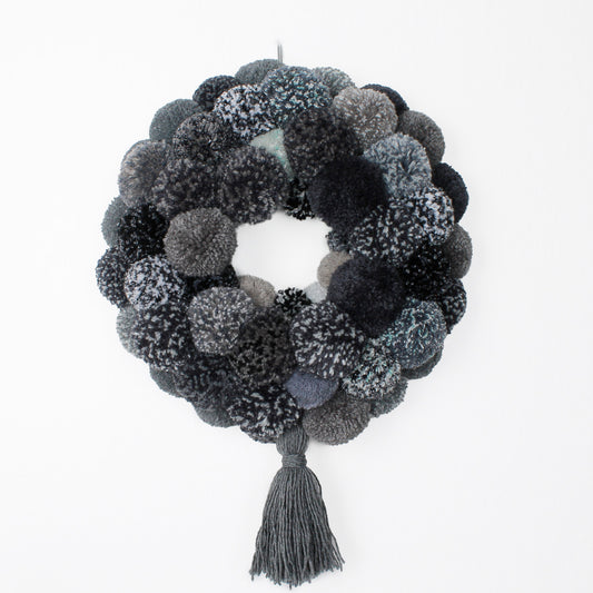Pom-Pom Wreath with Tassel – Handmade Decorative Wreath in Black, Gray, and Anthracite