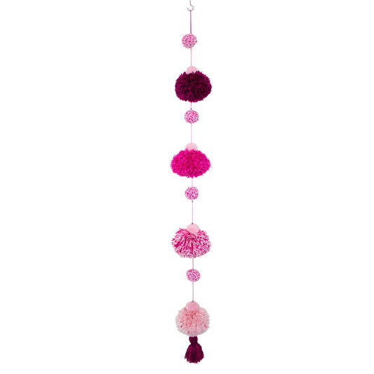 Handcrafted Pompon Wall Hanging with Wooden Beads