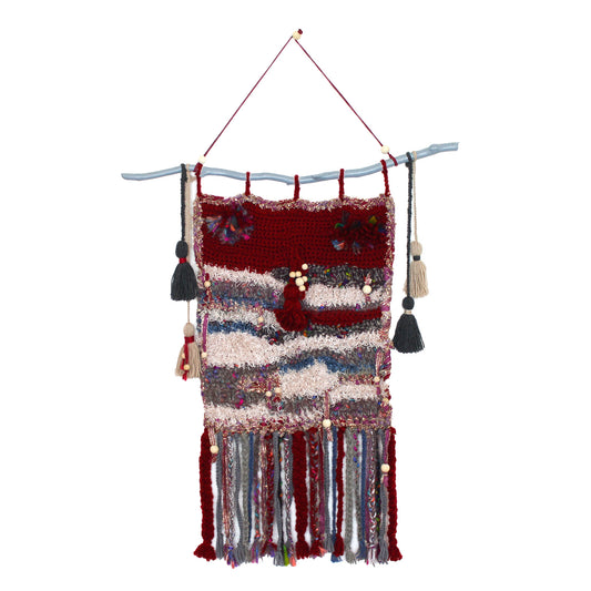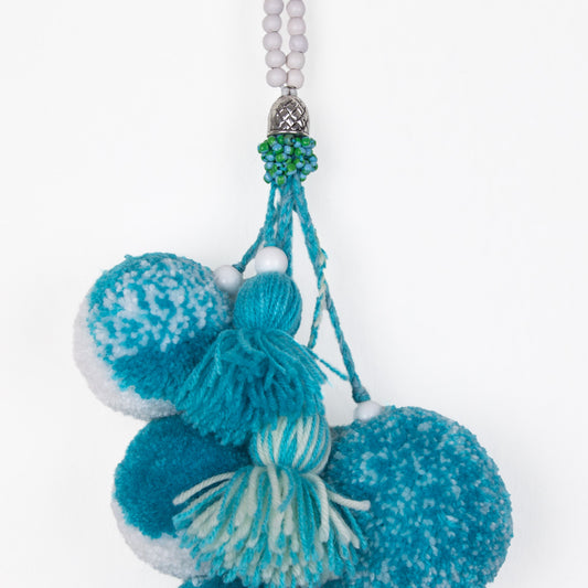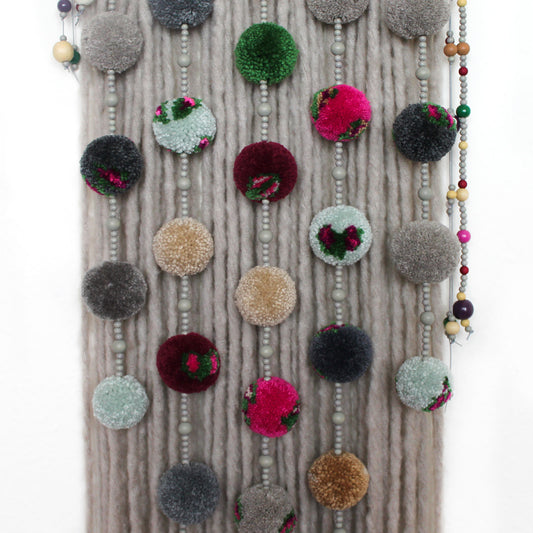 Handcrafted Pompon Wall Hanging with Wooden Beads