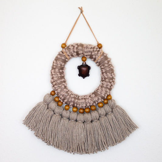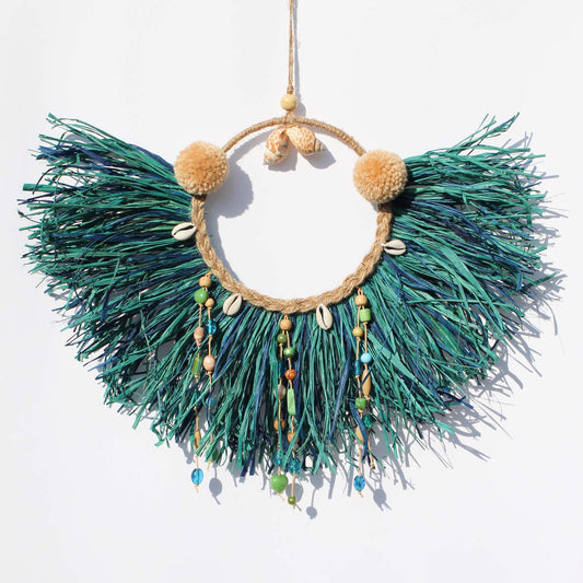 Caribbean-Inspired Boho Wall Decor with Shells and Pom Poms