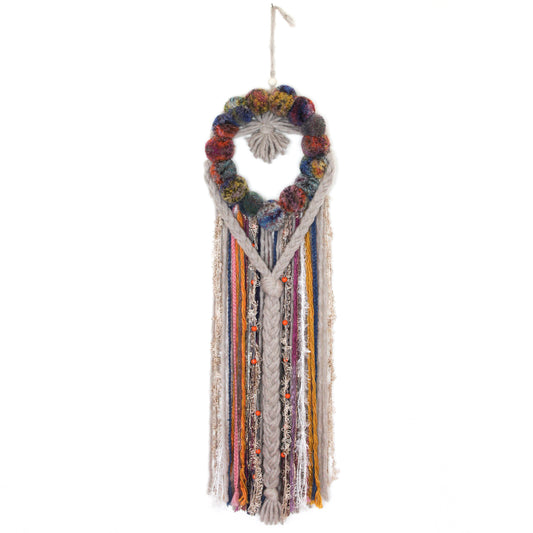 Retro Boho Wall Hanging with Rainbow Pom Poms