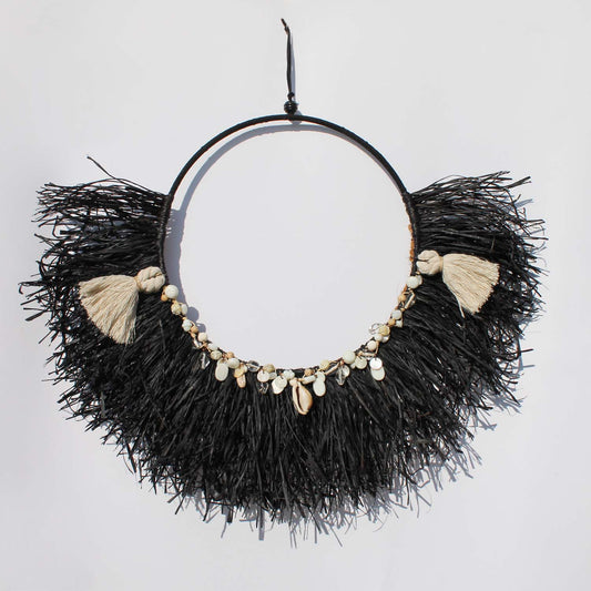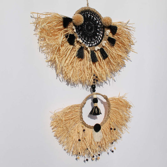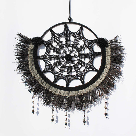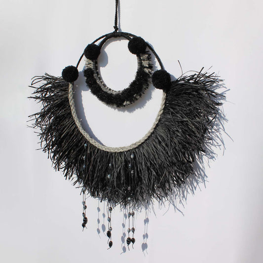 Elegant Boho Wall Hanging in Black and Gray with Glitter Accents