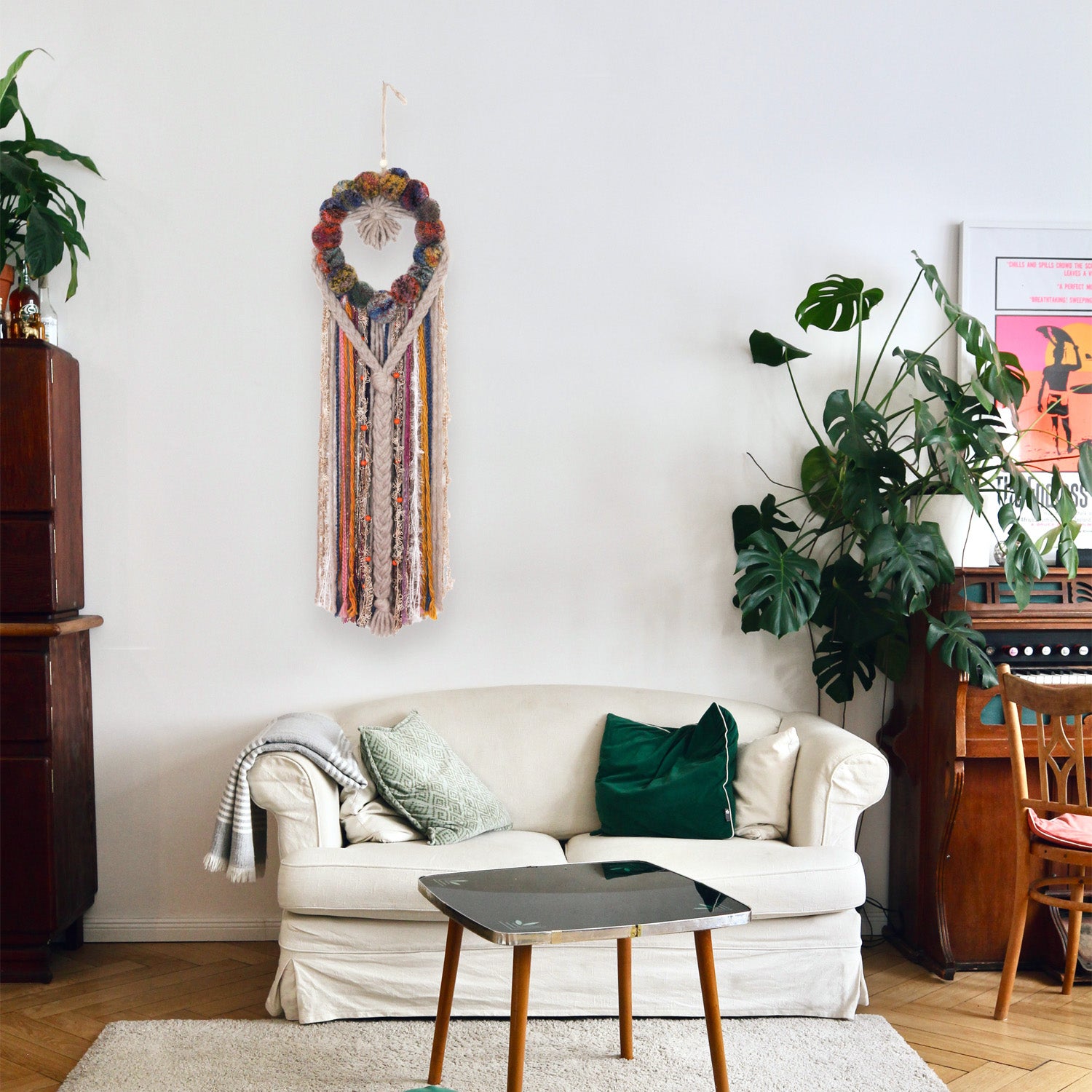 Retro Boho Wall Hanging with Rainbow Pom Poms